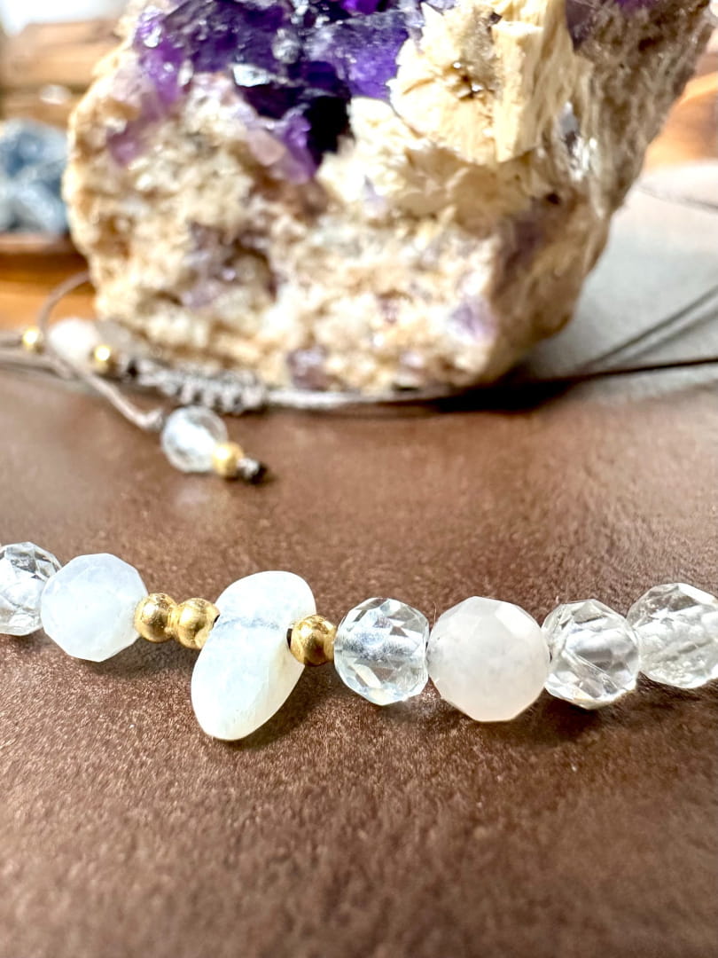 Bransoletka jest robiona ręcznie i stworzona z naturalnych kamieni dzięki czemu nie ma dwóch takich samych sztuk. Układ kamieni, pozostałych elementów czy kolorystyka będą się od siebie różniły.