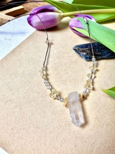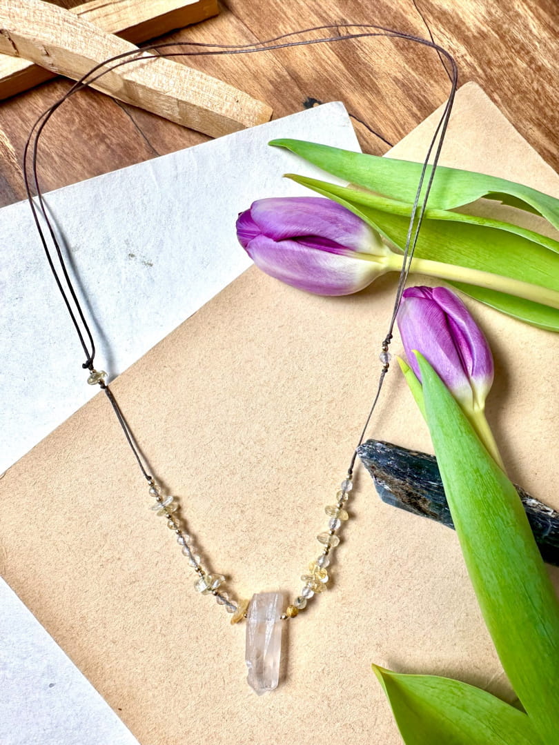 Naszyjnik amulet ręcznie wykonany z CYTRYNU i KRYSZTAŁU GÓRSKIEGO.