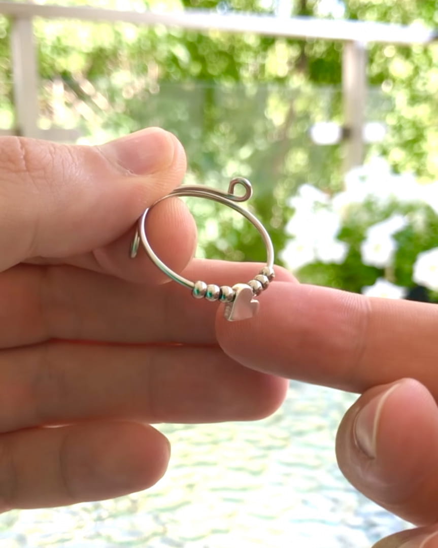 Koraliki mogą być zarówno przesuwane jak i obracane. Pierścionek można odwrócić do wewnętrznej strony dłoni aby czynność stałą się niewidoczna.