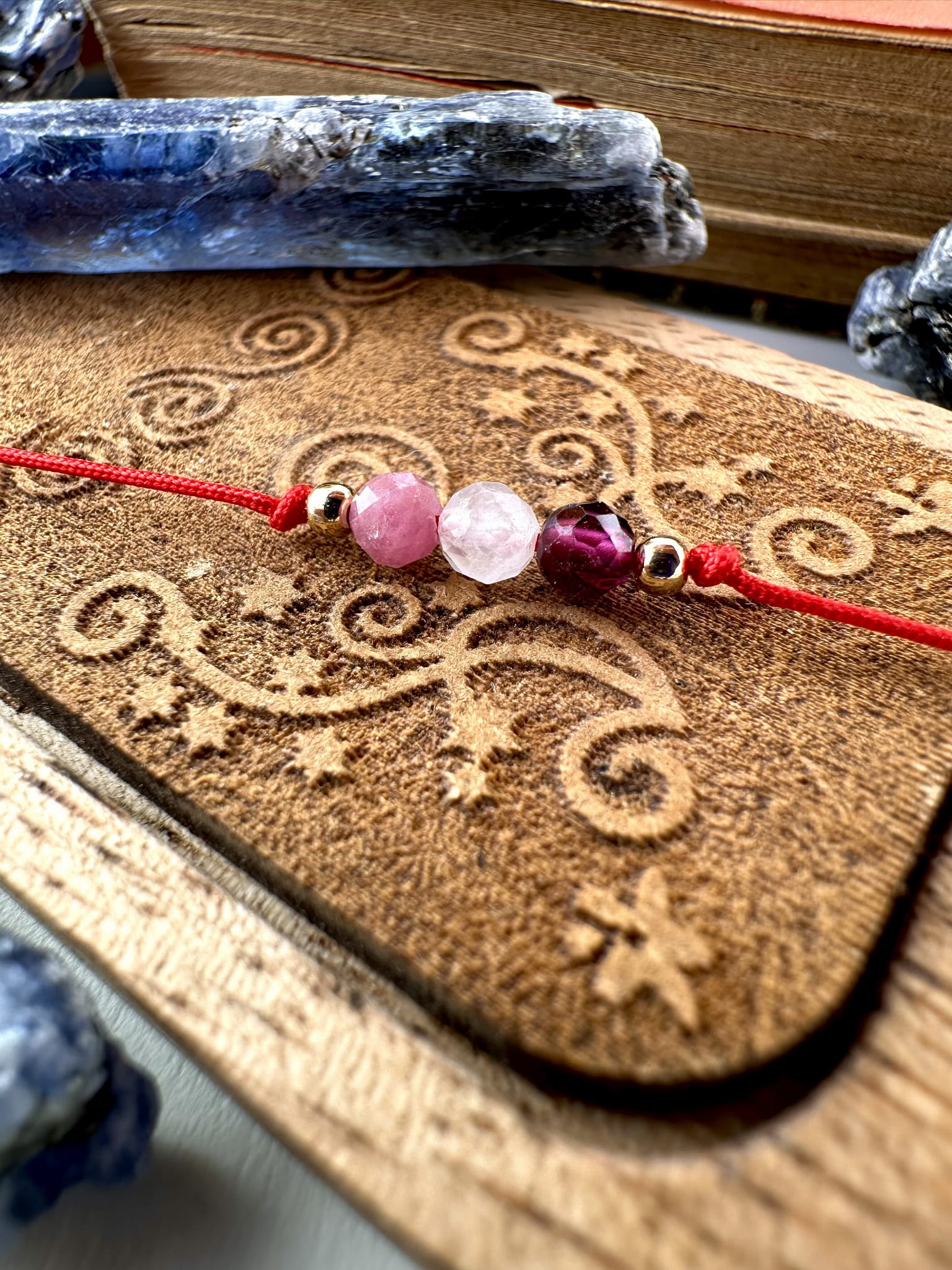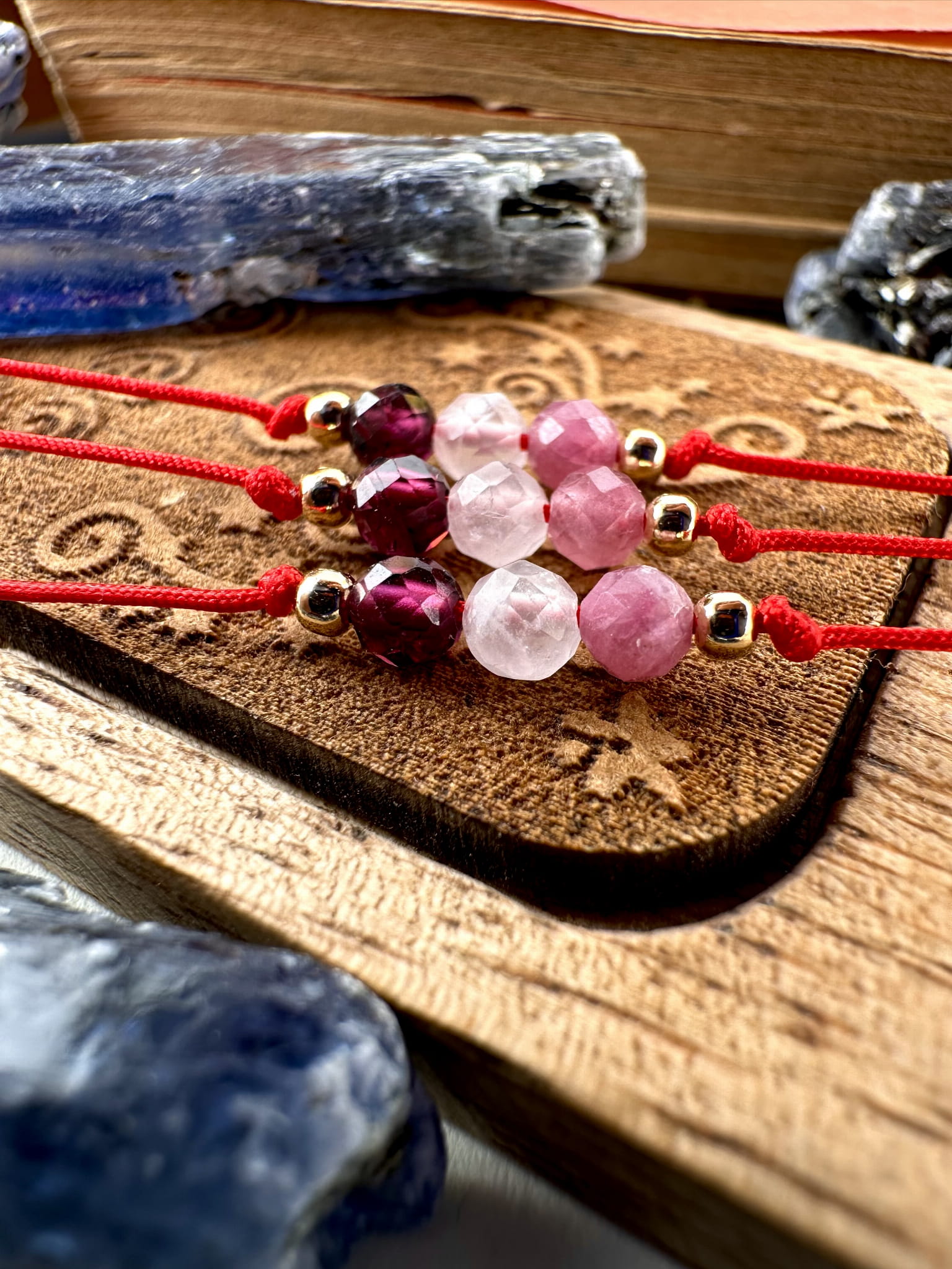 Turmalin różowy → Kwarc różówy → Granat - uzdrowione serce → przyciągnięcie miłości → chemia i trwałość