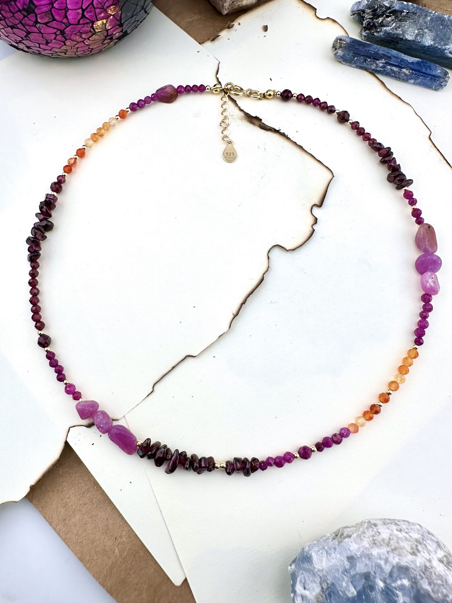srebro próby 925 pokryte 18k złotem, kamienie naturalne fasetowane 3-8mm, żyłka jubilerska.